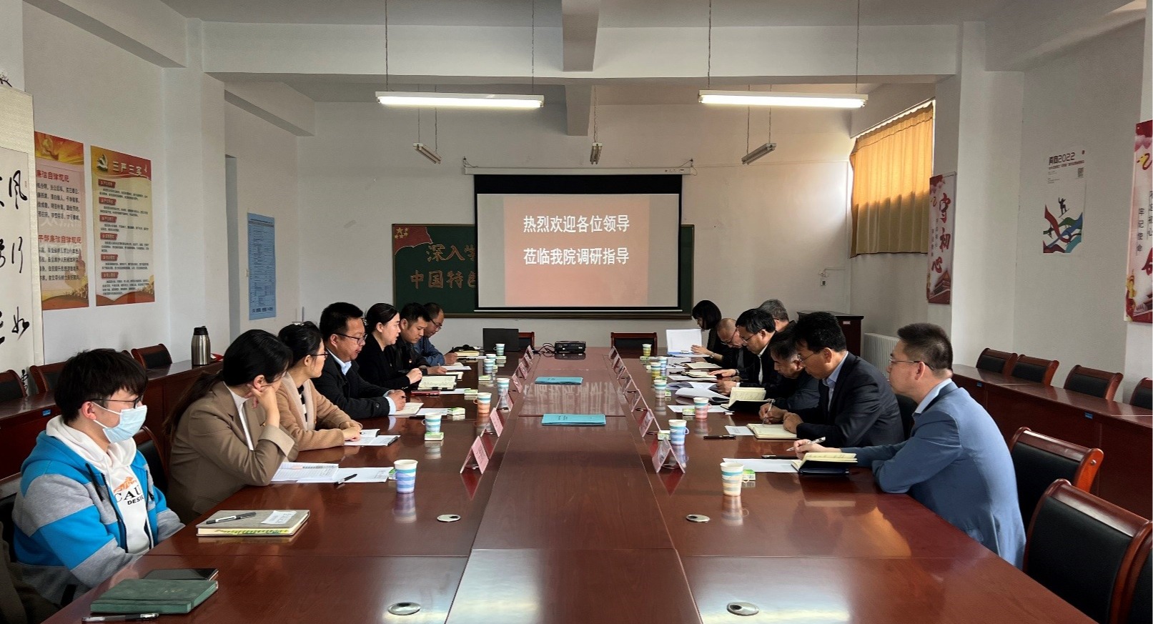 翁维素董事长一行认真听取公司领导班子的汇报,不时与大家交换意见和看法,并与参会人员就本院特色工作、科研成果、人才引进、青年教师发展等议题进行了深入交流。
