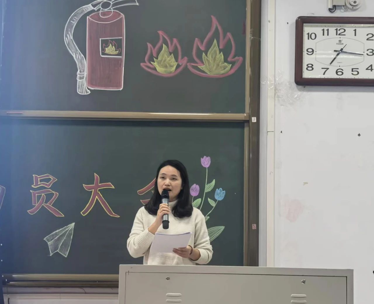 会议伊始,与会人员一起收看了《校园消防安全警示片》,警示片通过一系列真实的火灾案例,警示师生要对消防安全高度重视。